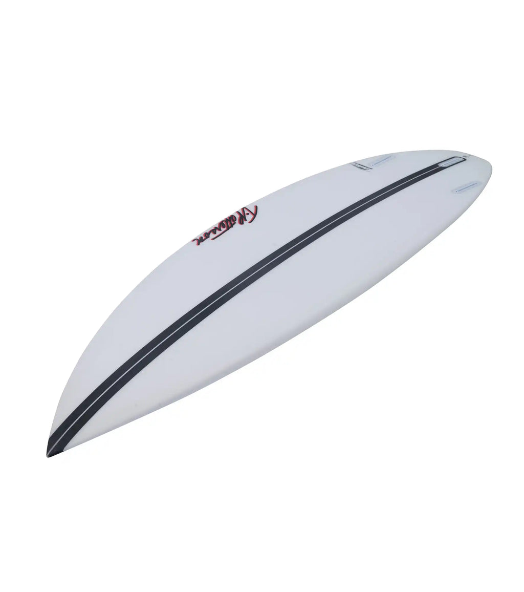 Crafted with a medium-low nose rocker and a medium-high kick in the tail rocker, the Gas Pedal generates exceptional speed. This remarkable speed can be attributed to the magical single concave artfully carved into the bottom of the board.