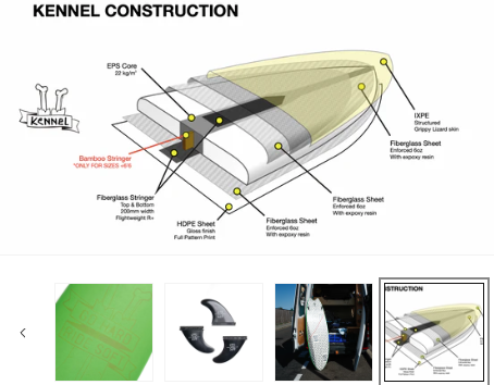 Boards built with Epoxy, Carbon Fibre and soft boards generally don’t have stringers.