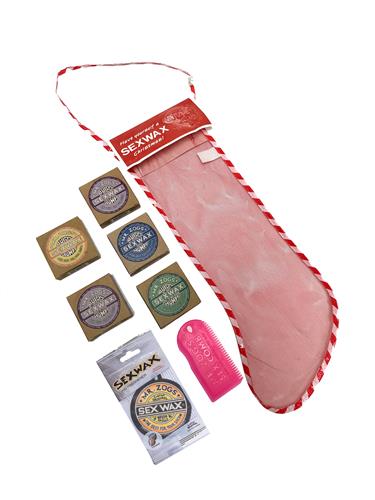 This is the best christmas present for any surfer. This cool christmas stocking is packed with all the Sex Wax surfwax you need, in different water temperatures so you can apply the right surfwax to your board all year round. In addition to 5 blocks of surfwax, this Sex Wax Christmas stocking has a wonderfully scented air freshener for the mirror of your car and a wax comb.